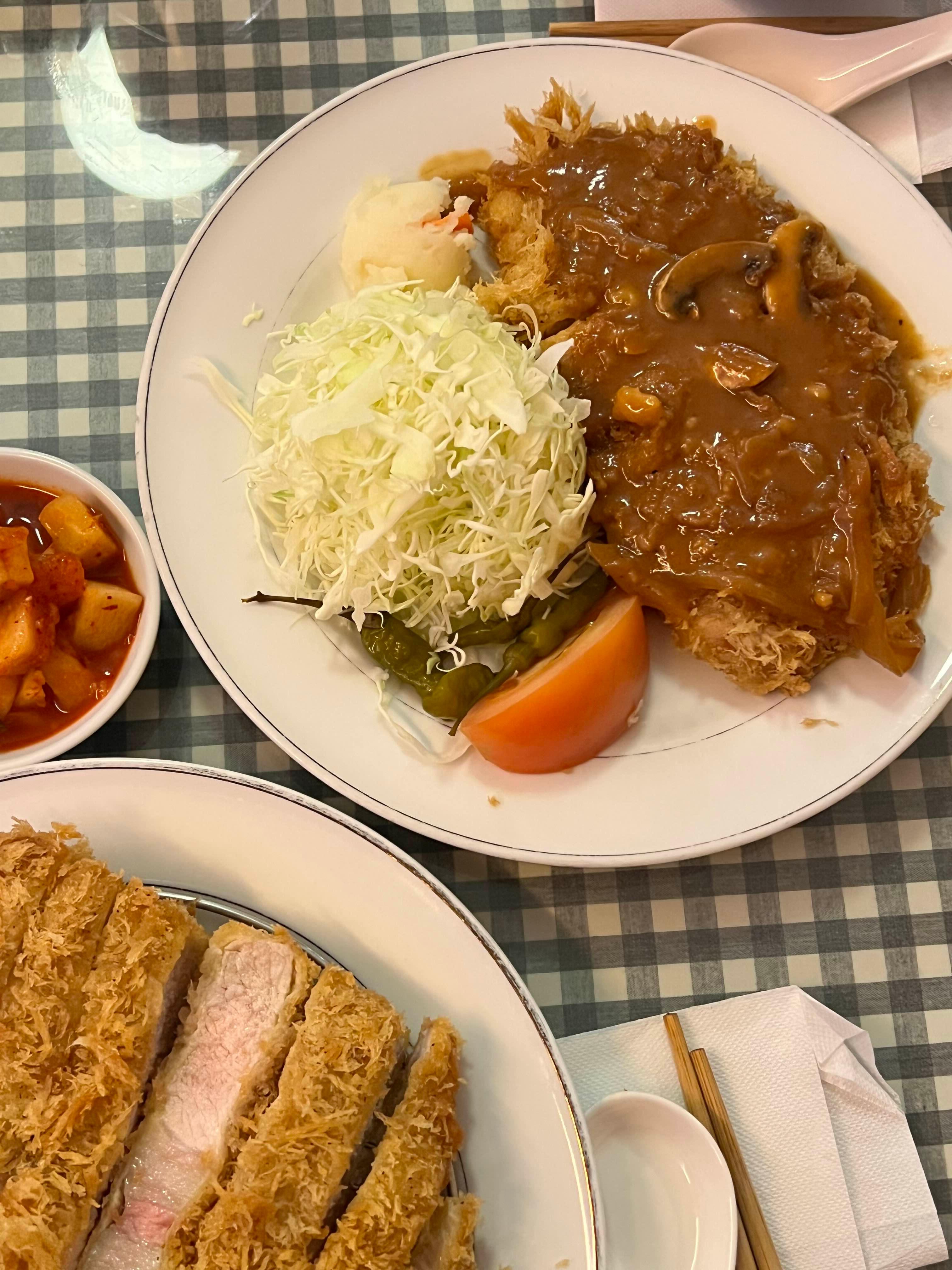 등심가스 + 깊고 진한 브라운 소스 조합인데,