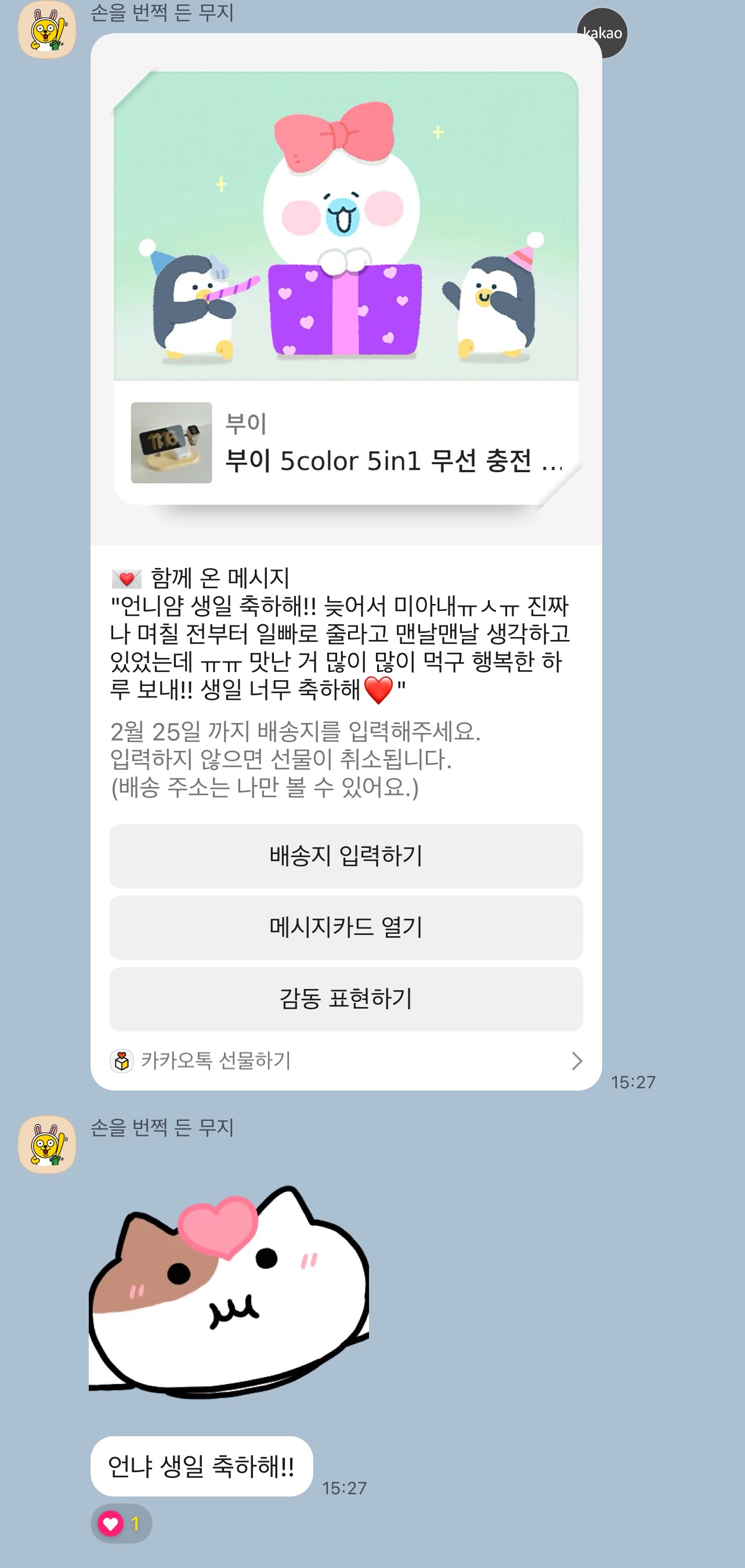 생일선물로 받았는데