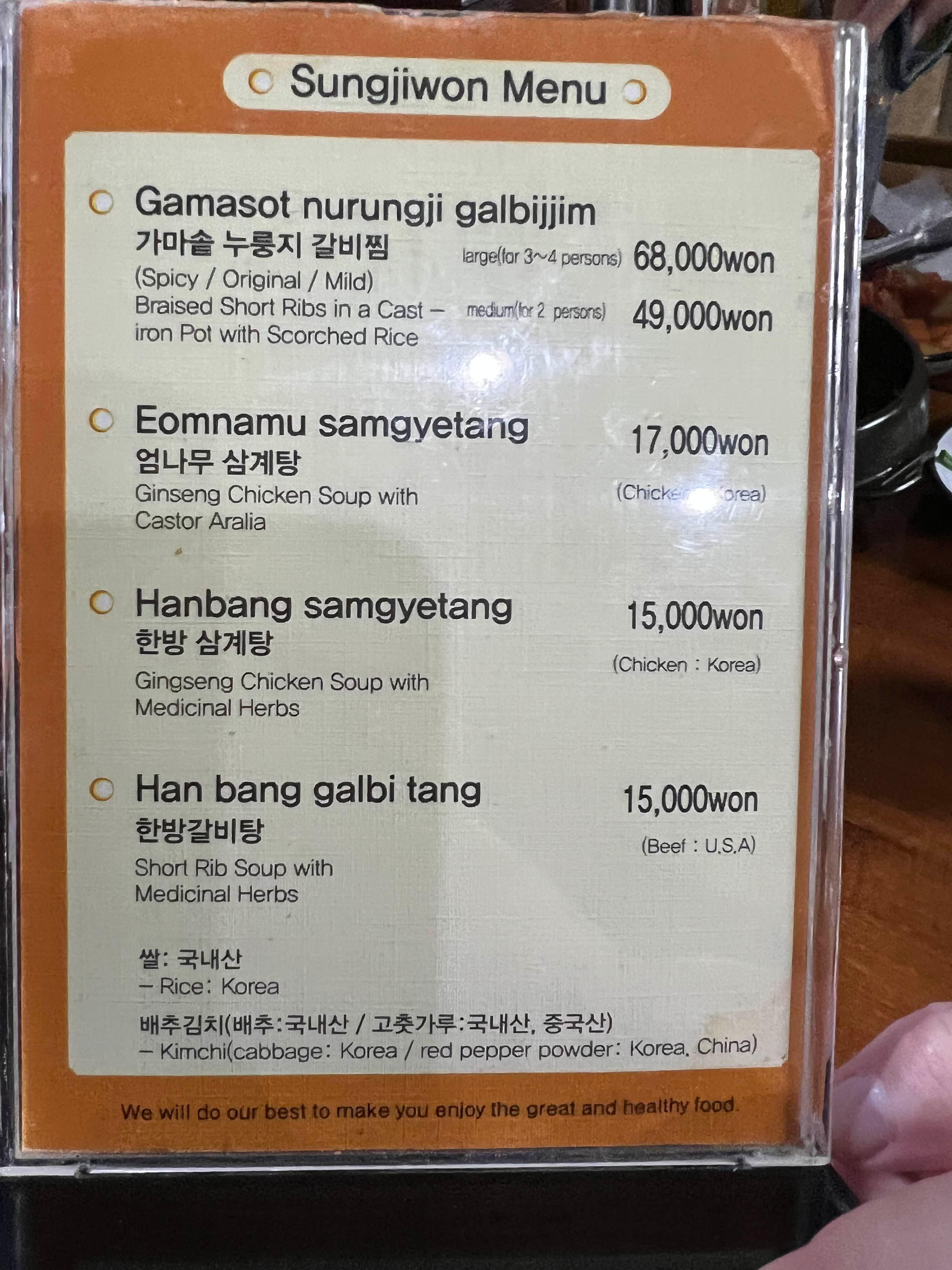 제가 먹은 메뉴는 삼계탕 15,000원짜리였어요!