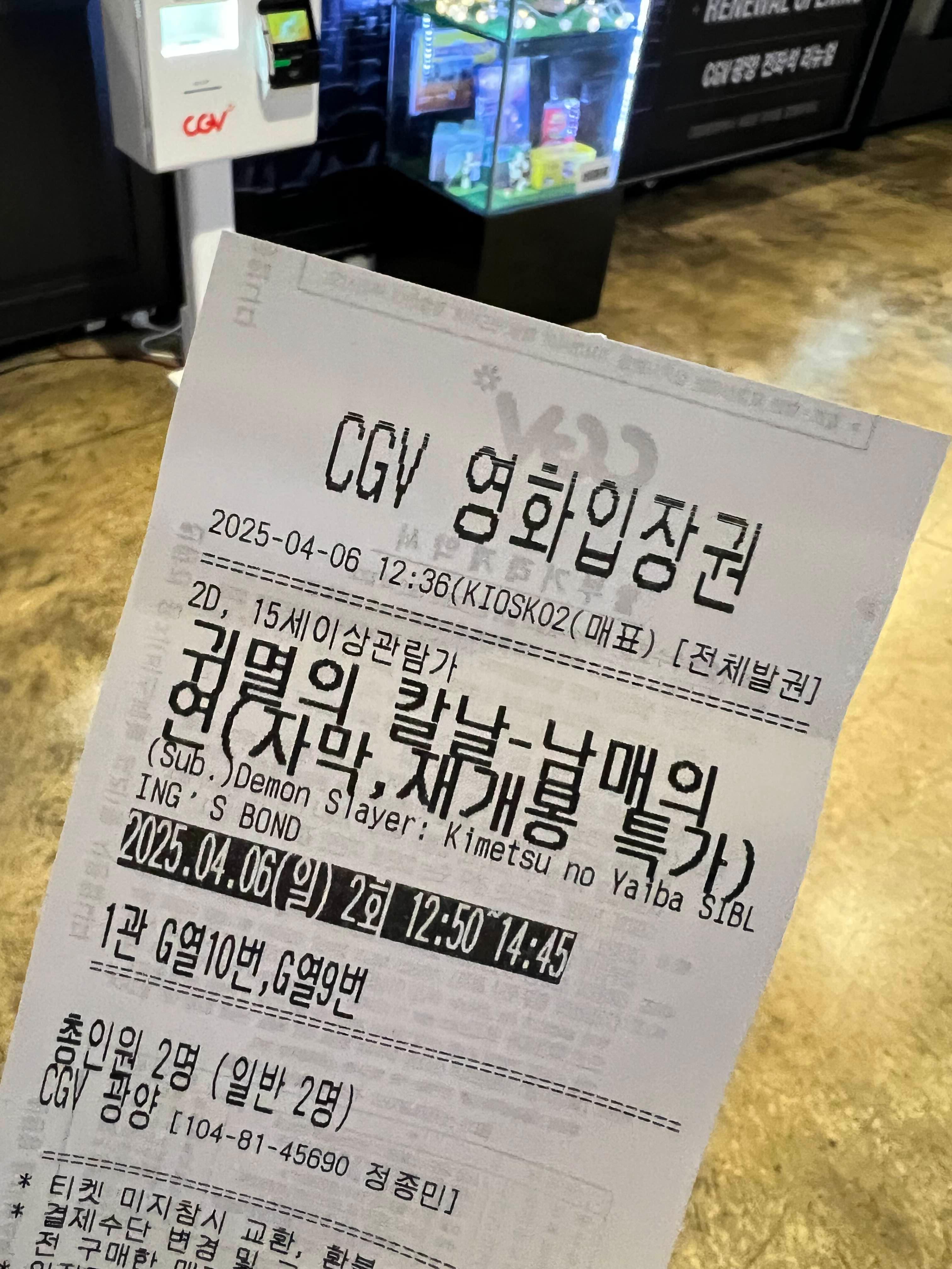 귀멸의칼날/남매의연/극장판/CGV/유포터블/기유/광양CGV/팝콘 후기/애니 재개봉/극장판 애니메이션 후기
