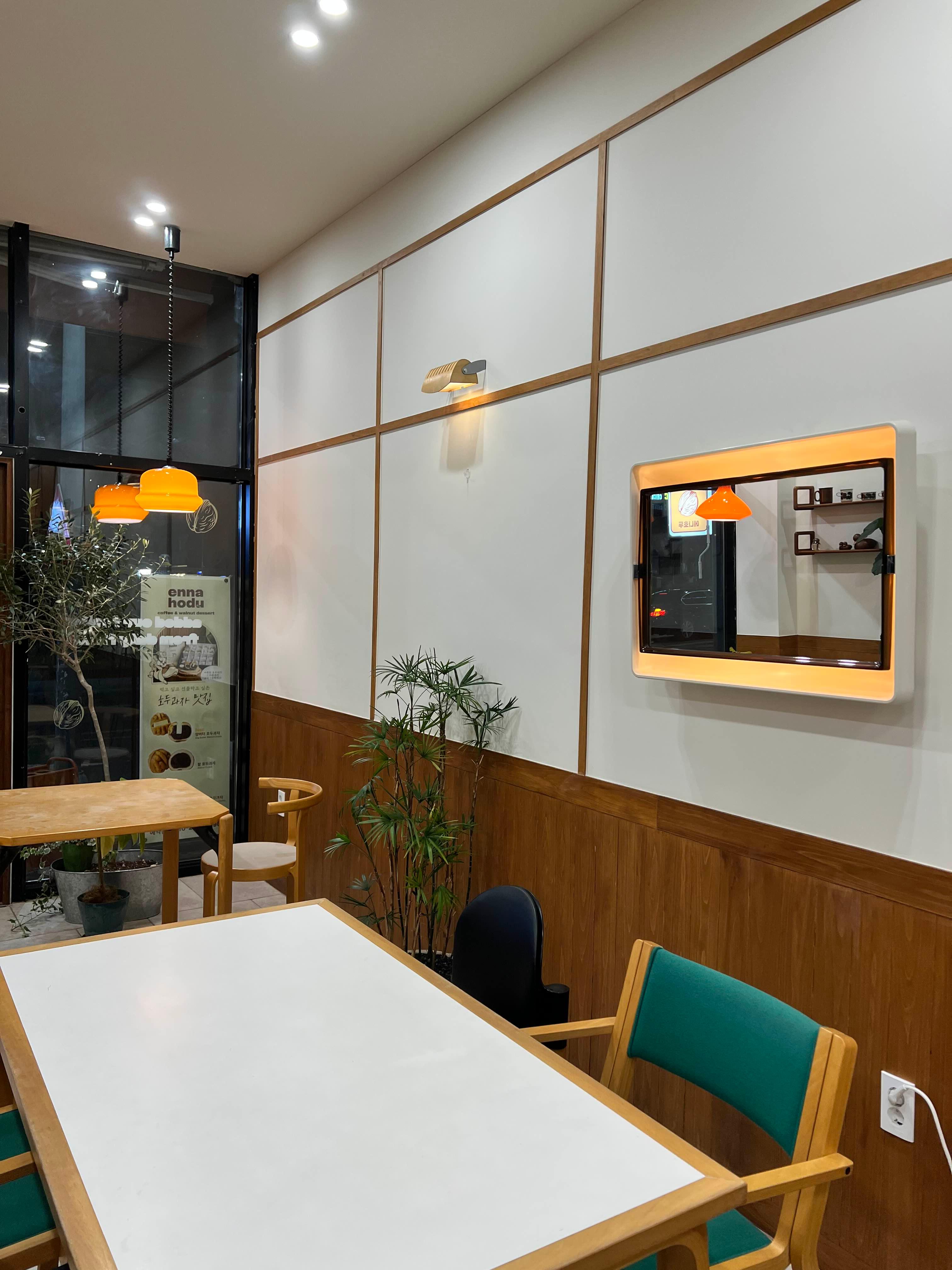 전체적으로 우드톤 인테리어에 따뜻하고 깔끔한 분위기였어요.