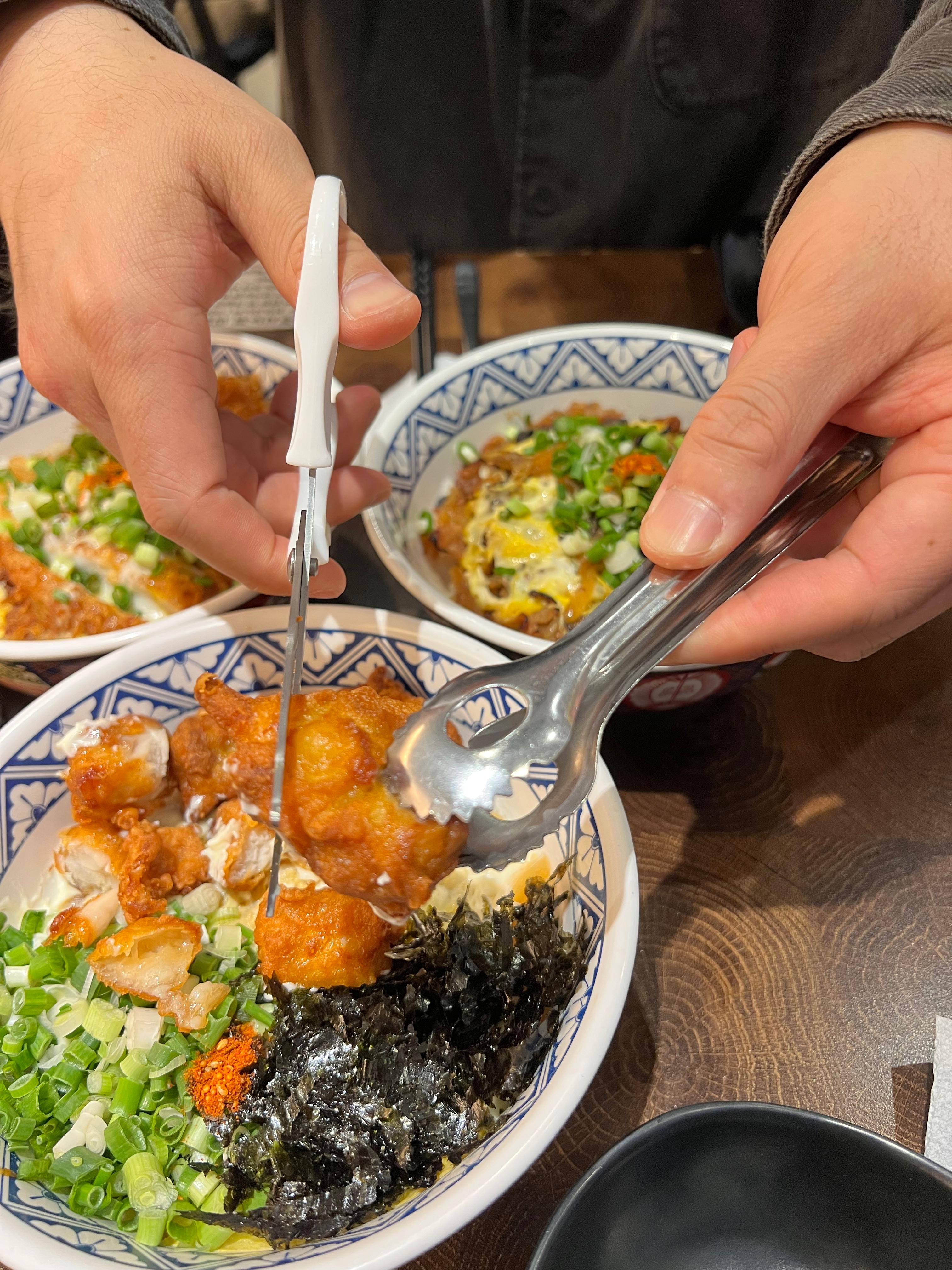 + 치킨마요는 잘라먹을 수 있는 가위와 집게도 제공됩니다 ~