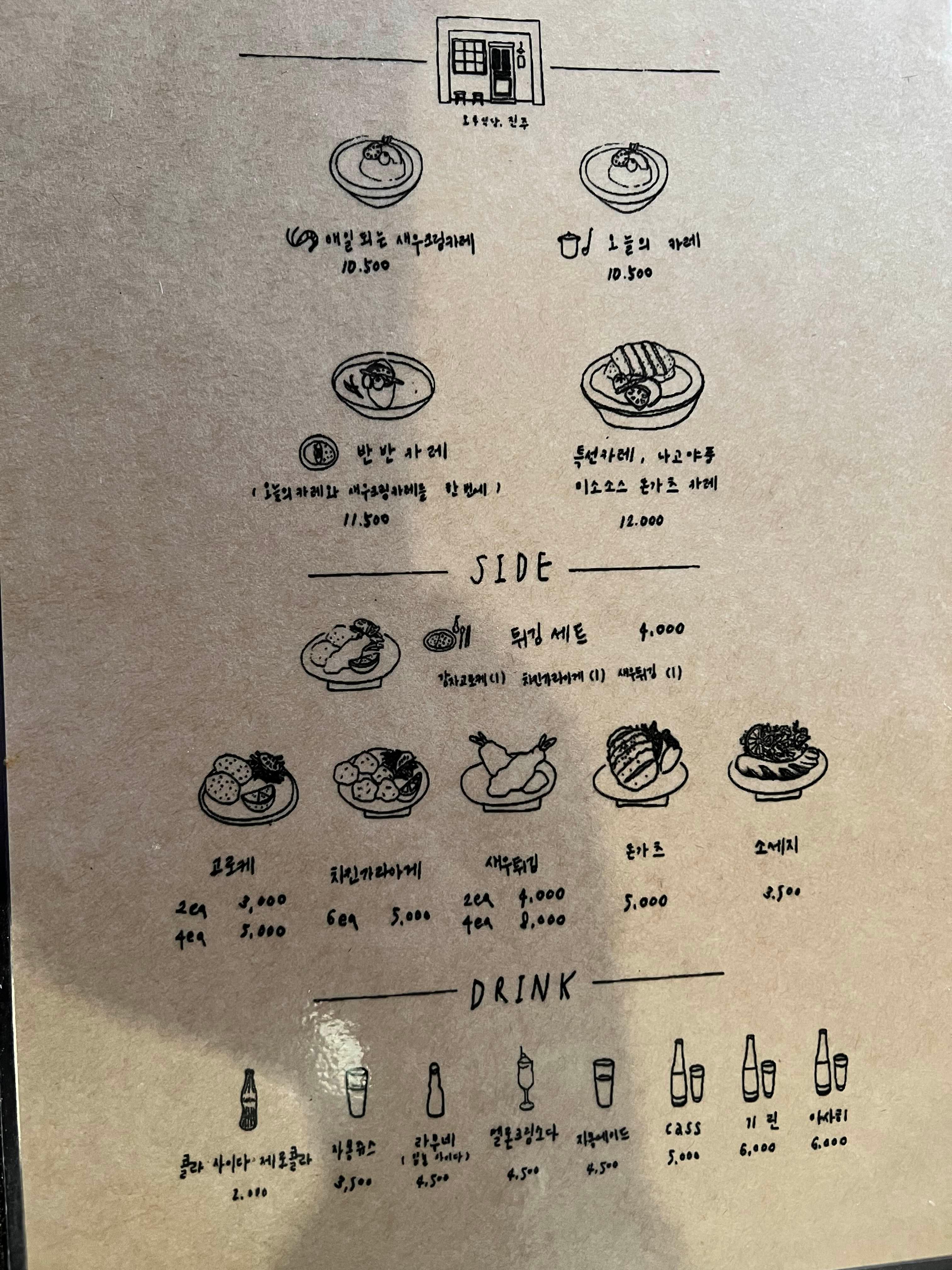 | 오늘의 카레 | 9,500원 | 매일 바뀌는 일일 한정 카레 (예: 비프카레 등) |