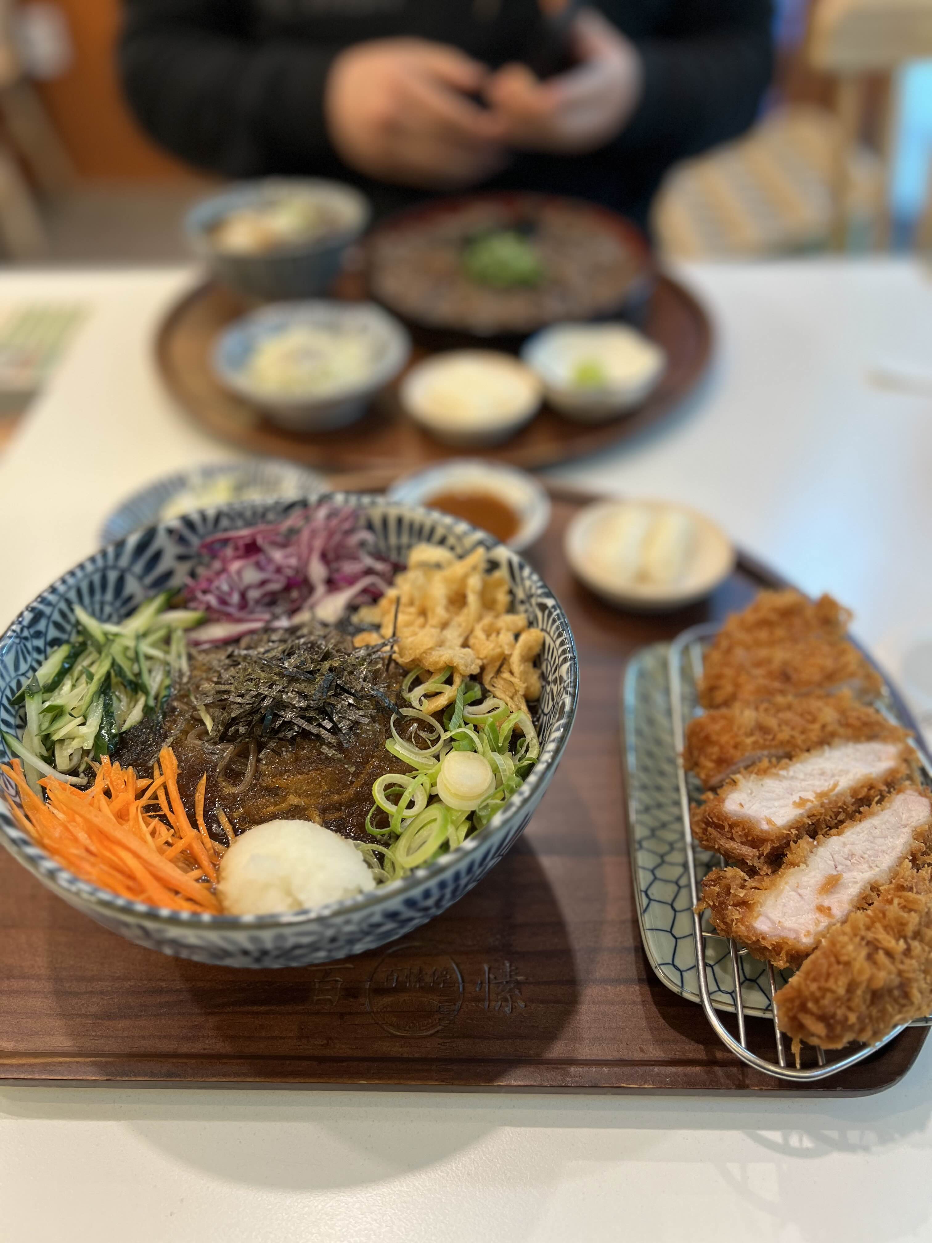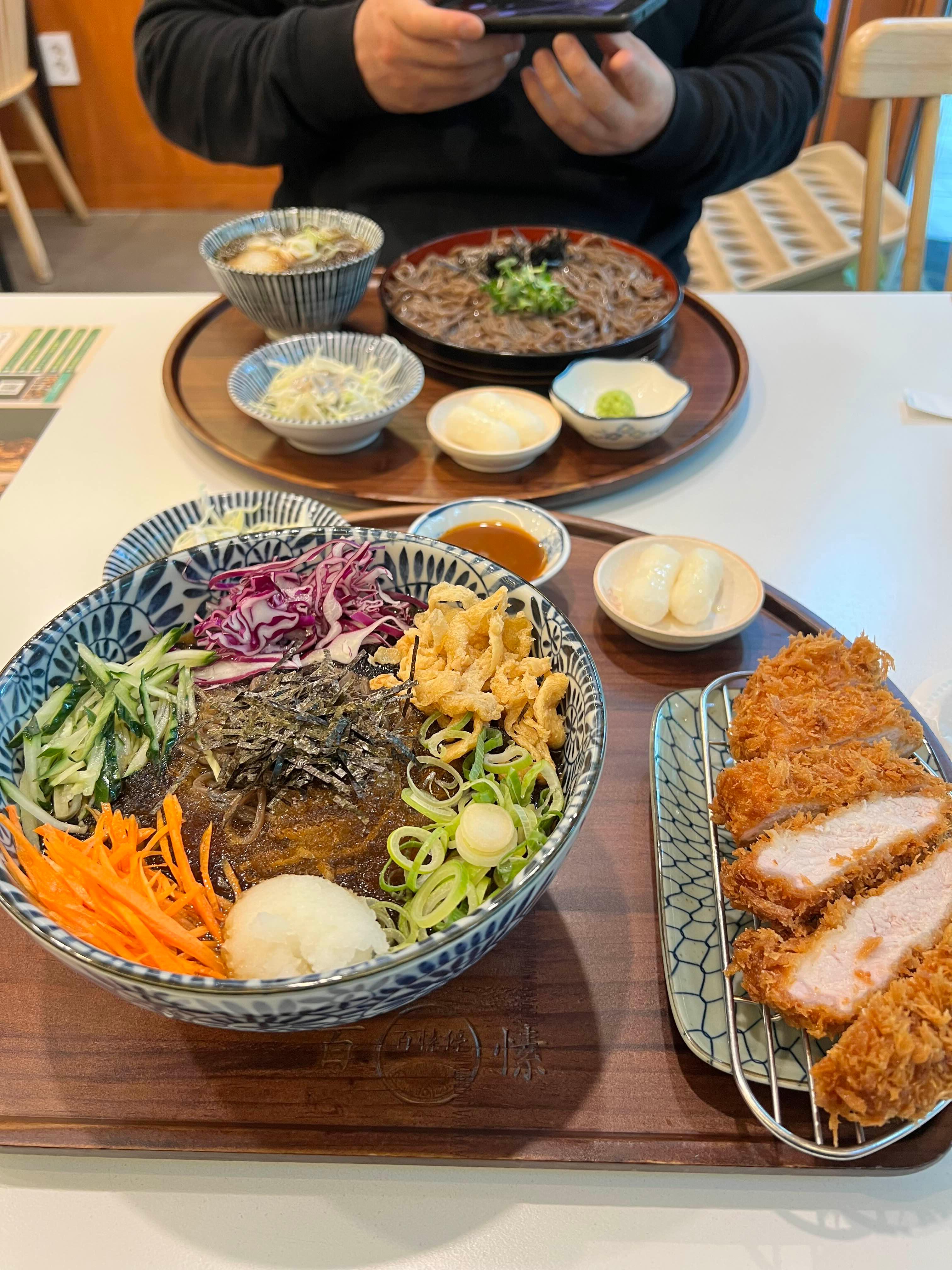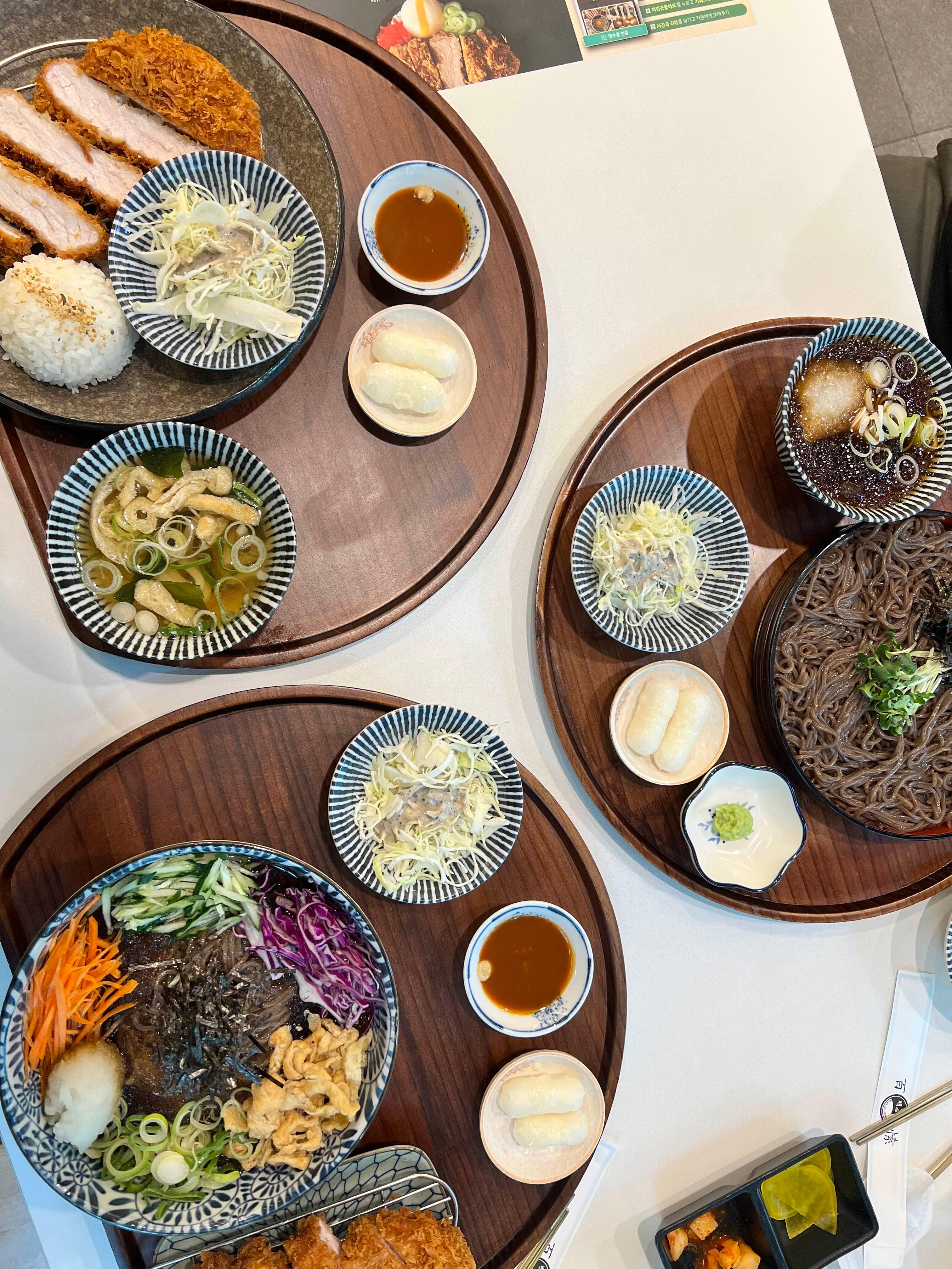 - 자루소바 + 돈카츠 (14,900원): 찍어먹는 스타일의 소바와 담백한 돈카츠의 궁합이 아주 좋아요.