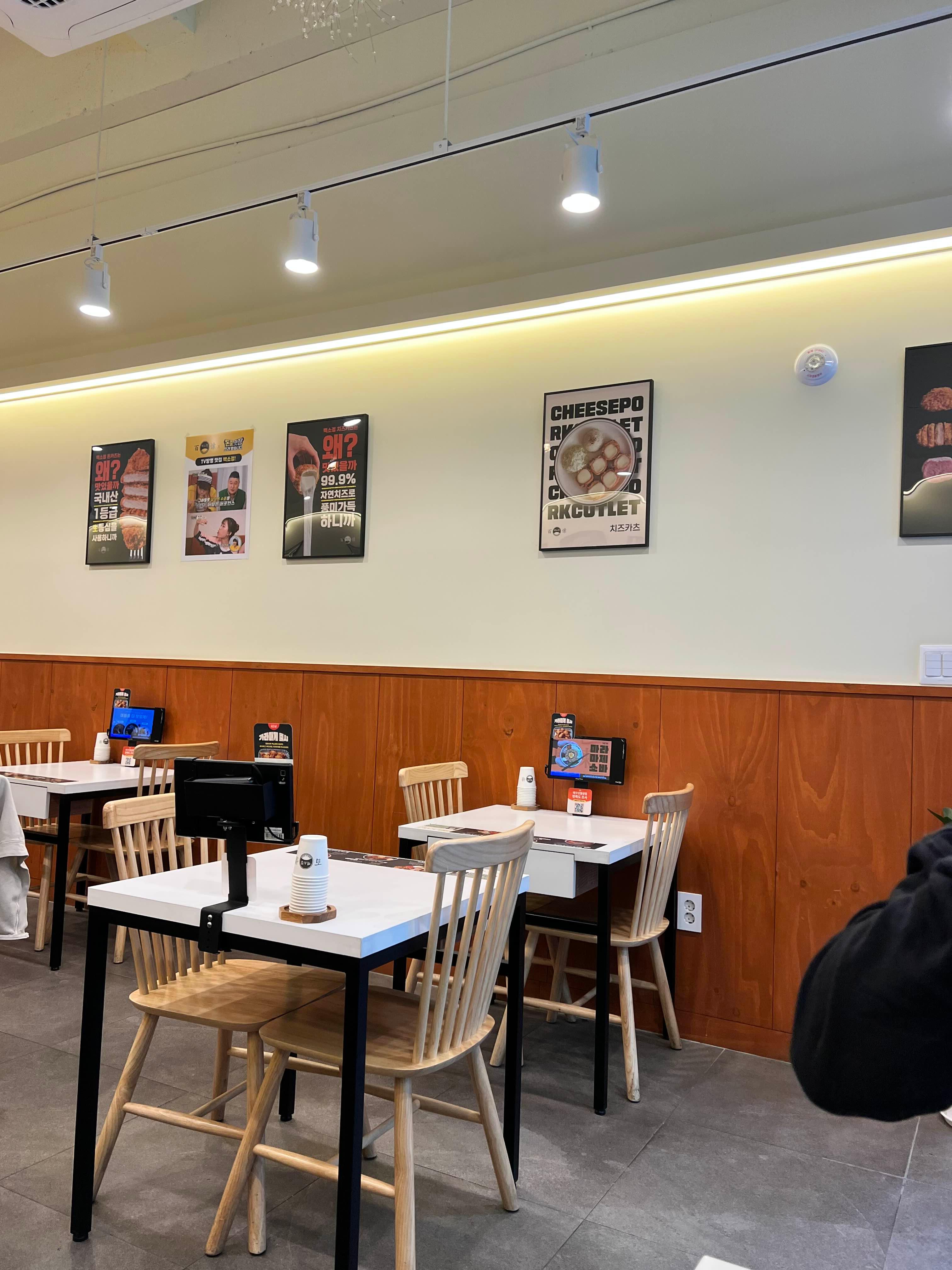 입구에 들어서자마자 느껴지는 건 ‘깔끔하다’는 느낌! 테이블 간 간격도 꽤 여유 있어서 데이트나 가족끼리, 심지어 혼밥으로도 부담 없어요. 메뉴는 각 테이블에 있는 키오스크에서 주문하는 시스템이라 자리 잡고 앉으면 직원분이 물 가져다 주세요.
