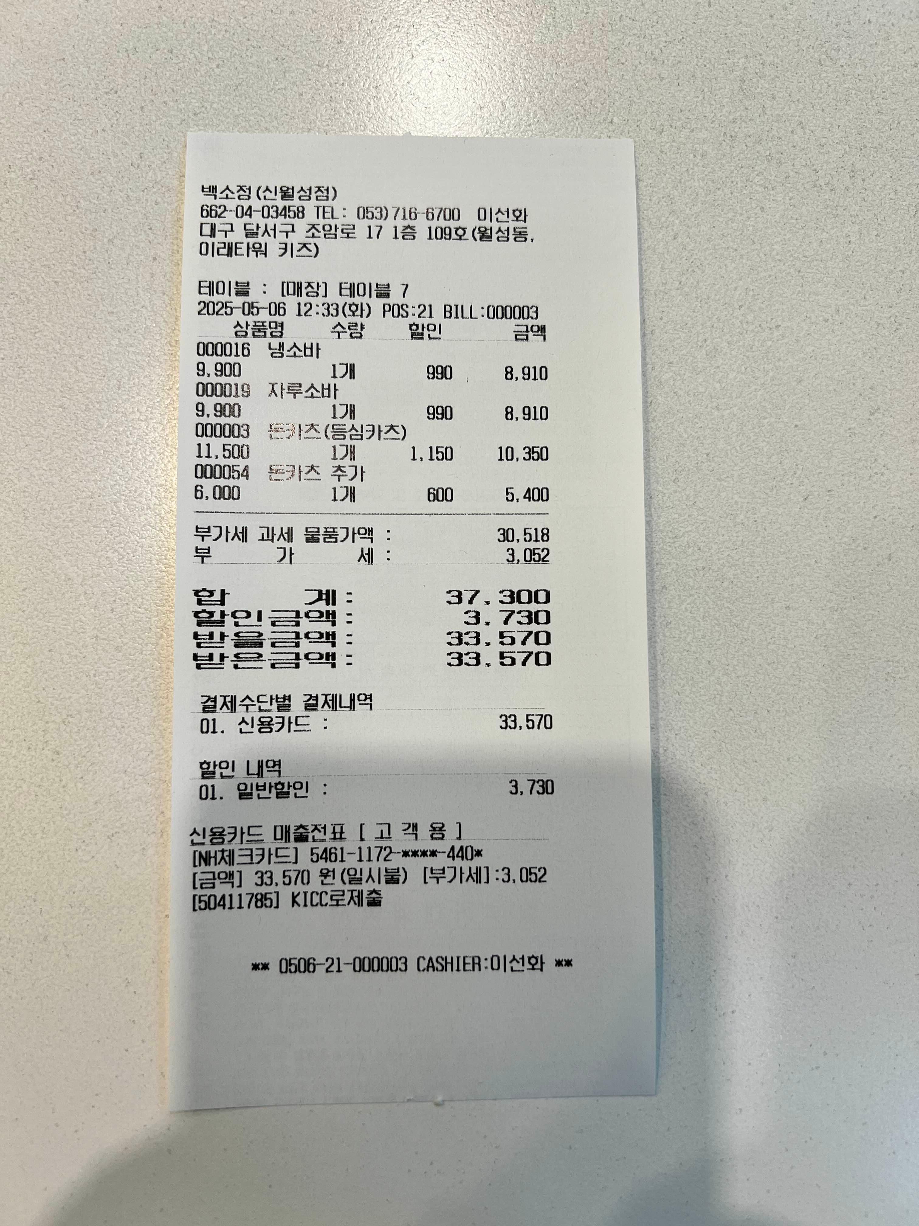 대구 백소정 신월성점 정보