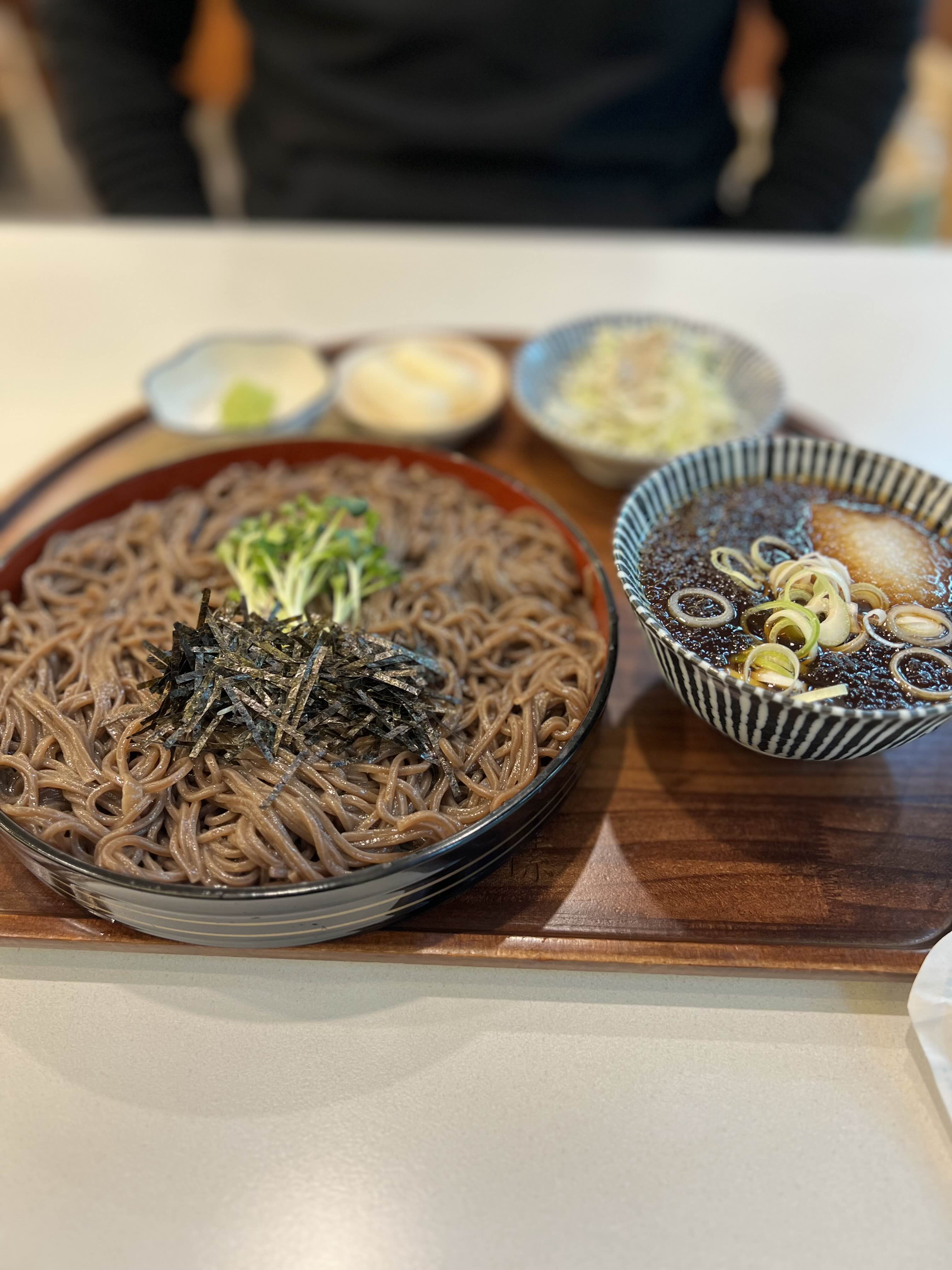 자루소바는 따로 담긴 진한 가쓰오부시 향의 육수에 면을 푹 담가 먹는 스타일이에요. 냉소바보다 더 ‘일본스러운’ 느낌이라 개인적으로 더 좋았어요. 특히 돈카츠랑 같이 먹으면 온도 밸런스도 좋고, 식감도 다양해서 질리지 않더라고요.