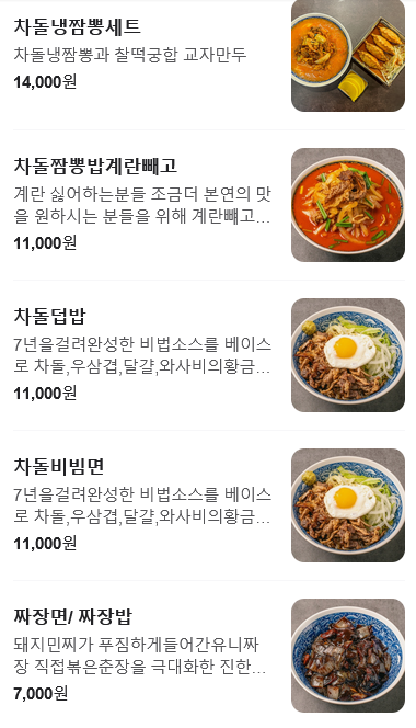 제가 시킨 메뉴 : 짜장면, 짬뽕, 탕수육 미니