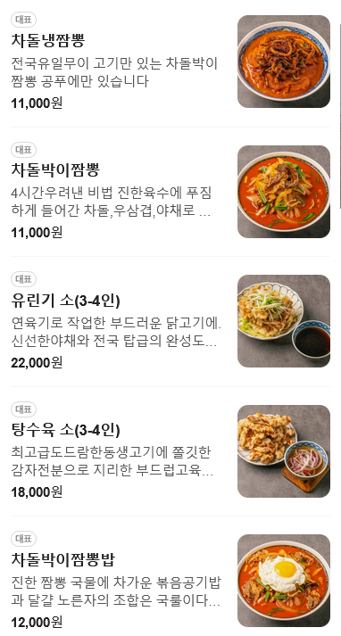 - 짜장면, 짬뽕, 탕수육 등 중화요리를 좋아하는 분