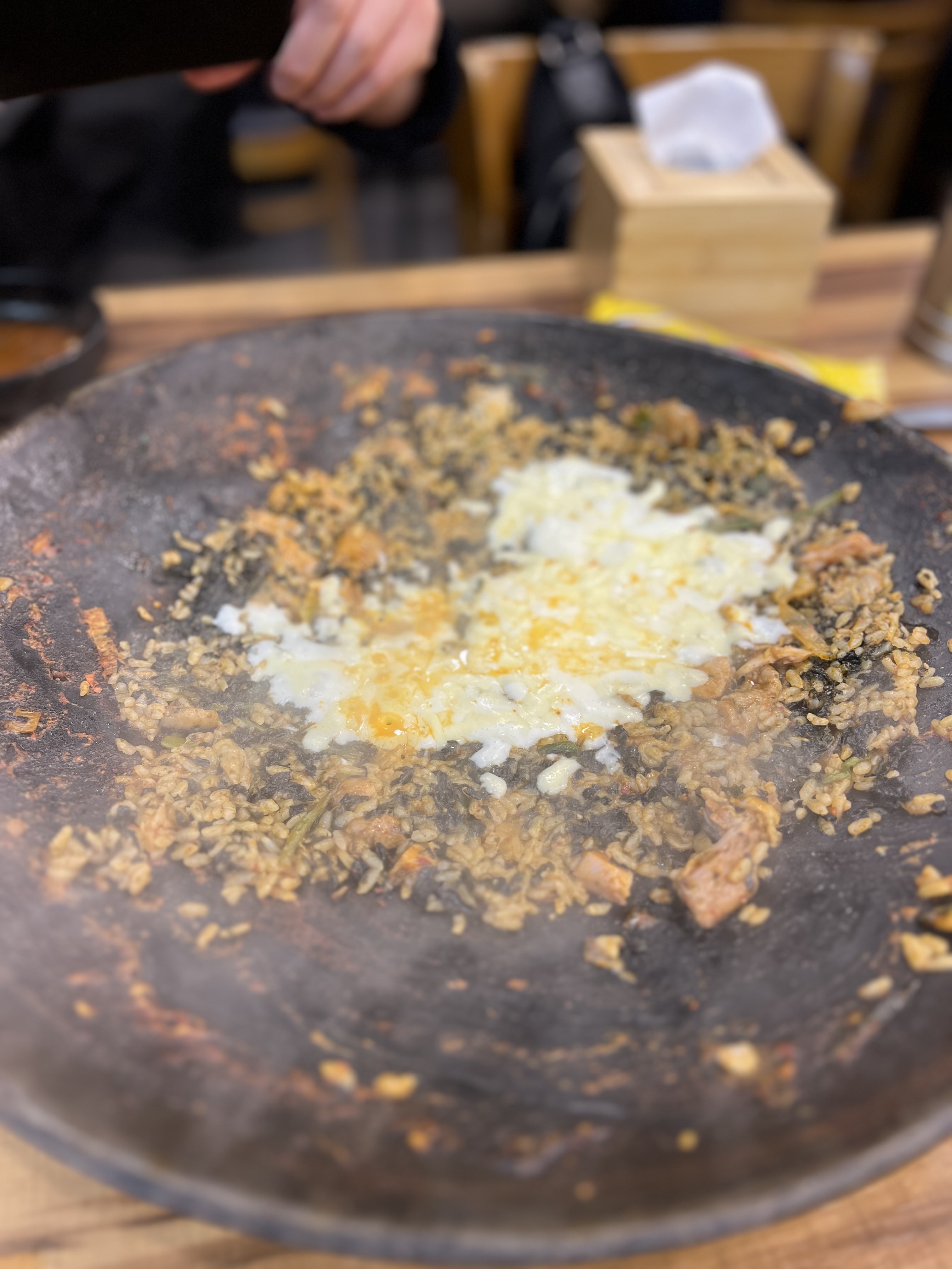 뚜껑 덮어 눌러준 치즈볶음밥은 진짜 말이 안 나올 정도로 맛있었어요.