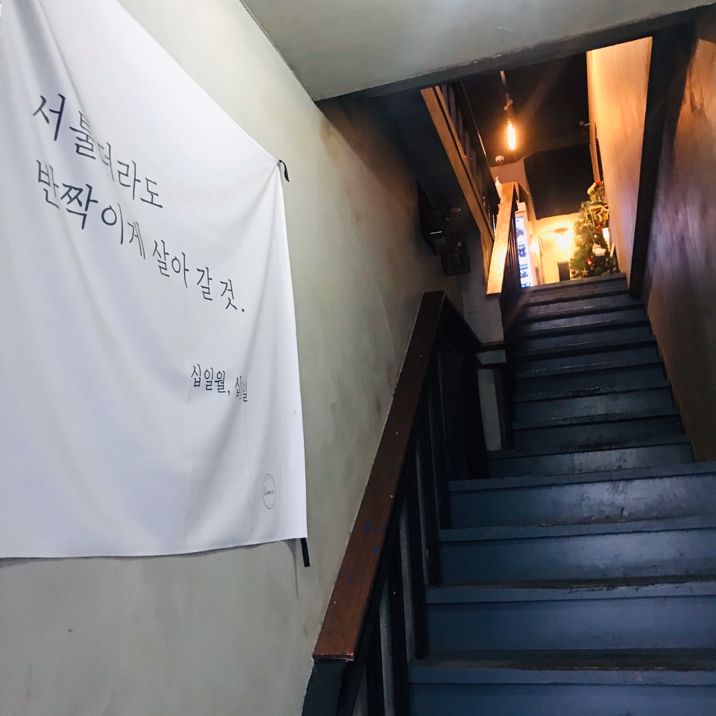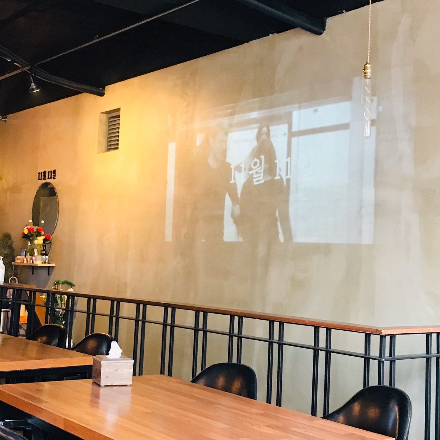 벽에 가게 이름인 '11월 11일'을 빔 프로젝터로 쏴서 이쁘게 인테리어를 했는데 그게 엄청 좋았다.
