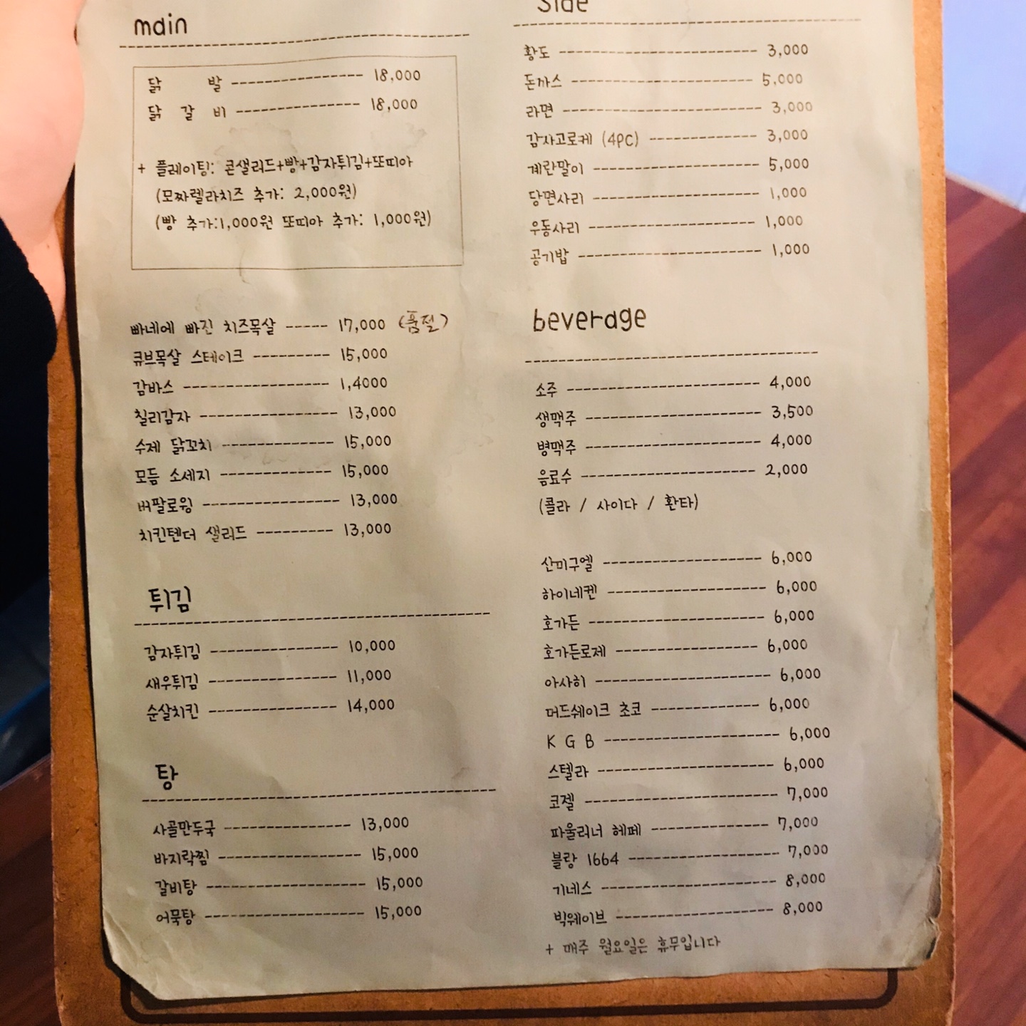이렇듯 꽤나 낡은 종이에 쓰여져있는 메뉴들은 이 집이 맛있어 손님들이 많이 많져 때가 탄듯 싶었다.