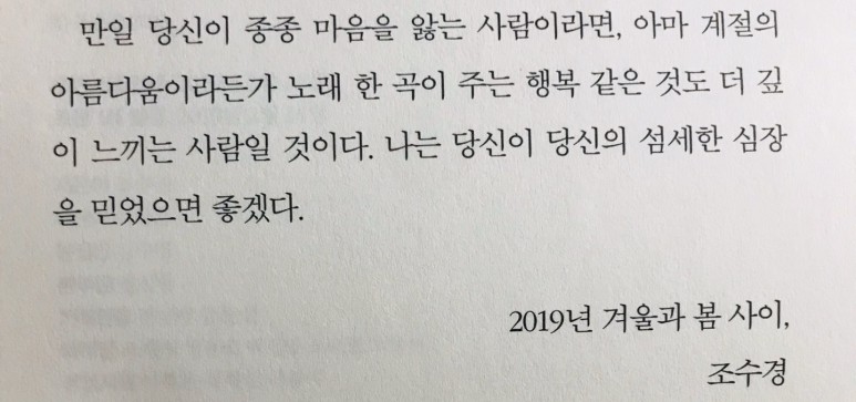 (P.S. 추천한 노래는 이 책을 선물해준 친구가 좋아하는 노래들로 구성했습니다.)